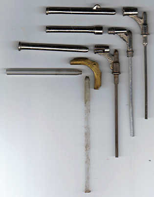vier oude fixeerspuitjes  vier gedemonteerde oude fixeerspuitjes